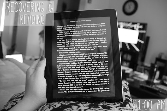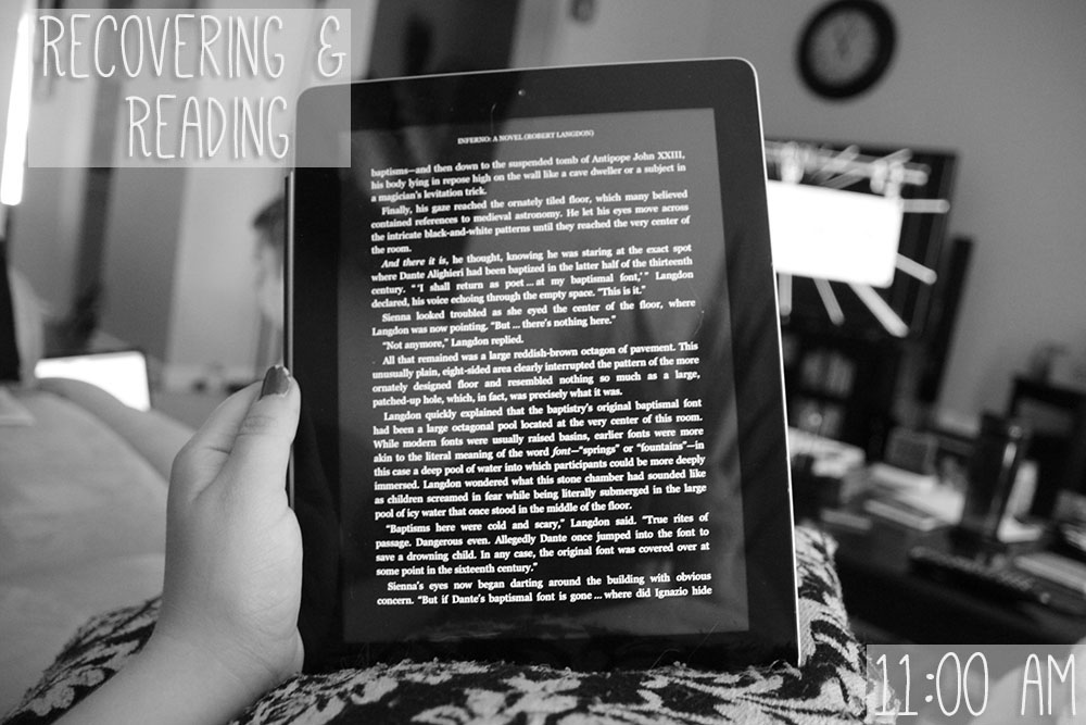 11:00 am – After the fall, TJ ordered lots of rest, so I iced my head and did some light reading.