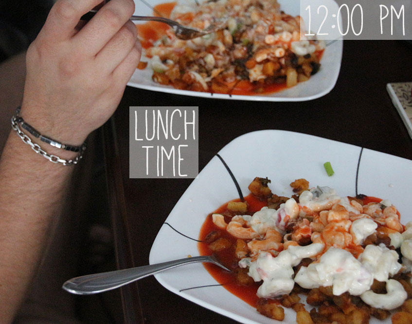12:00 pm – TJ made us Garbage Plates for lunch, aka the weirdest looking, yet most delicious tasting meal ever. It’s a Rochester, NY specialty, but TJ’s version is even better than the real thing. Like I said yesterday, he doesn’t cook much, but when he does, it’s incredible!.