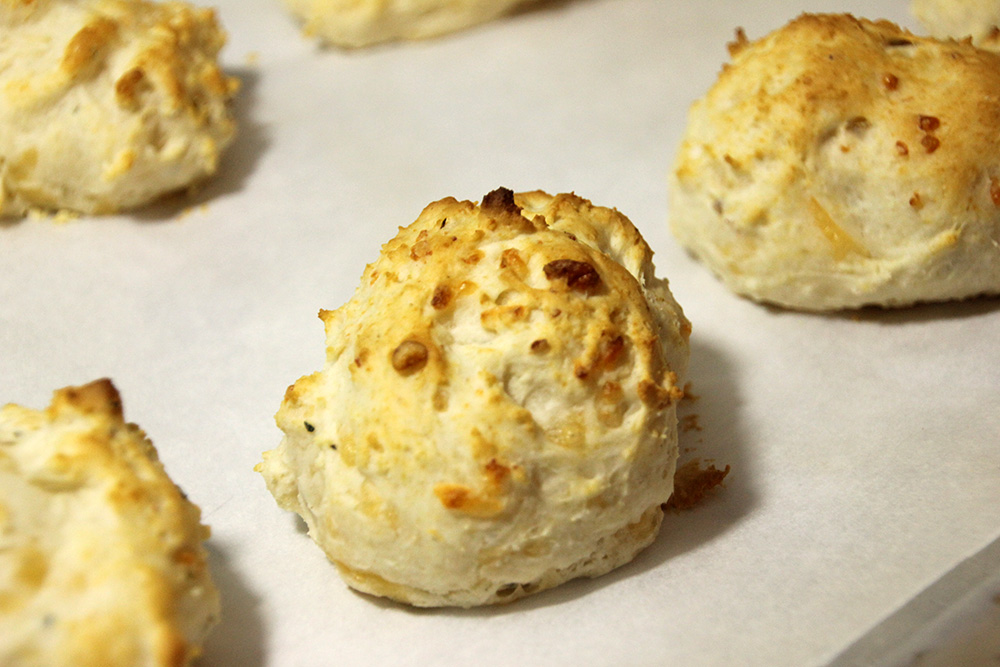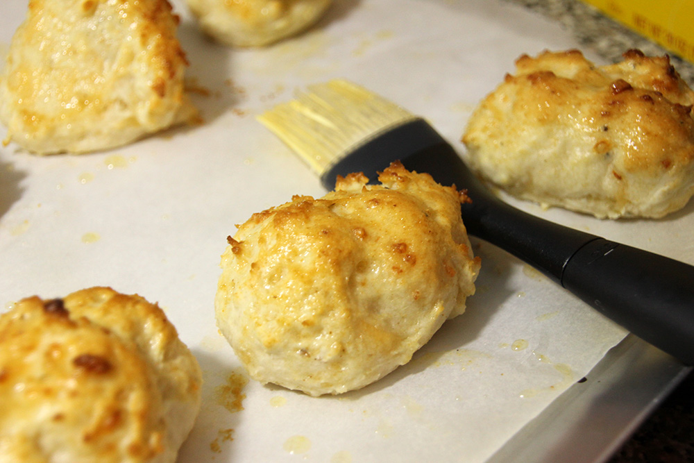 For a long time, I just relied on the internet to find recipes. It’s quick, easy, and extremely convenient – you literally have any recipe you could think of right at your fingertips. However, lately I’ve been completely obsessing over cookbooks. I just can’t get enough of them! I’ve spent more time than I’d care to admit going through every cookbook in our possession (which, admittedly, isn’t too many – TJ likes to remind me that we don’t have tons of space!). After I made our way through our collection, I hit my mom’s stash. I’m still making my way through hers, and I’m loving every page-turning second of it. These biscuits were in one of the few cookbooks that TJ had before we met. They’re cheesy, garlicky, and reminiscent of a certain seafood restaurant’s best known food. In short, they are absolutely delicious. Also, they only take about 10 minutes of prep time, so you should make them… like right now.