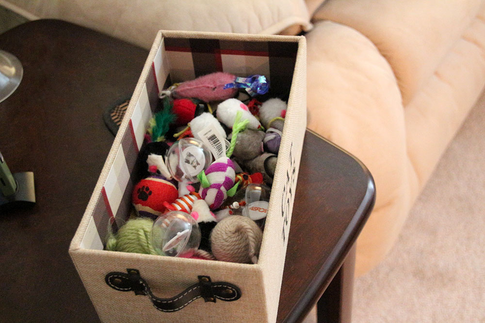 There were just a few issues – 1) I wanted it to say “cat toys” instead, and 2) I couldn’t justify spending $38 on something just to hold toy mice. Our cats are pretty spoiled, but that’s pushing it a bit.