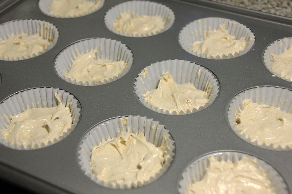 Use a small ice cream scoop to place the mixture in the baking cups.