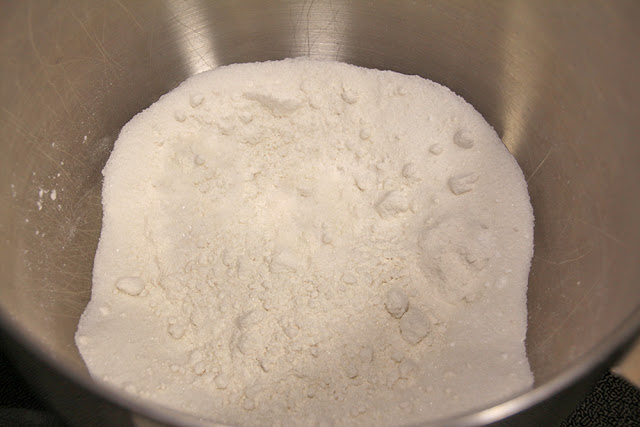 In a large bowl, combine the flour, sugar, baking powder, and salt.