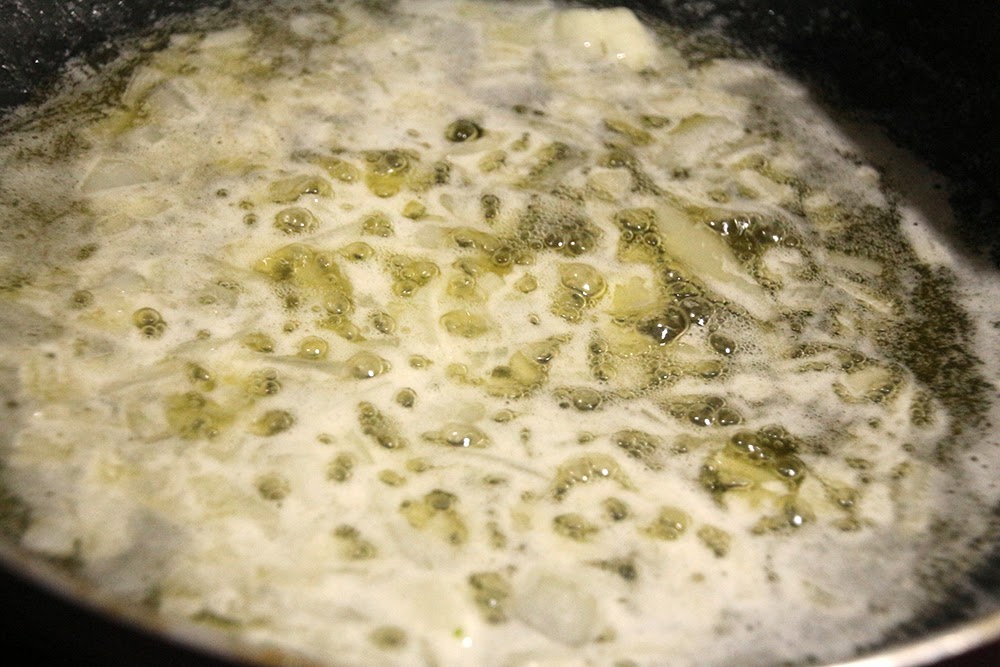 In a pan over medium heat, melt the butter and cook the onions until tender.