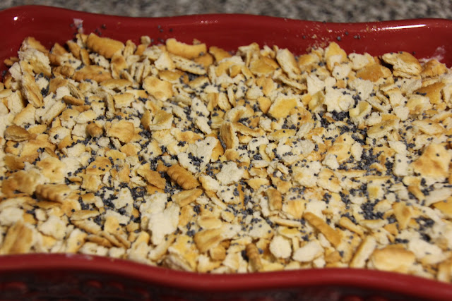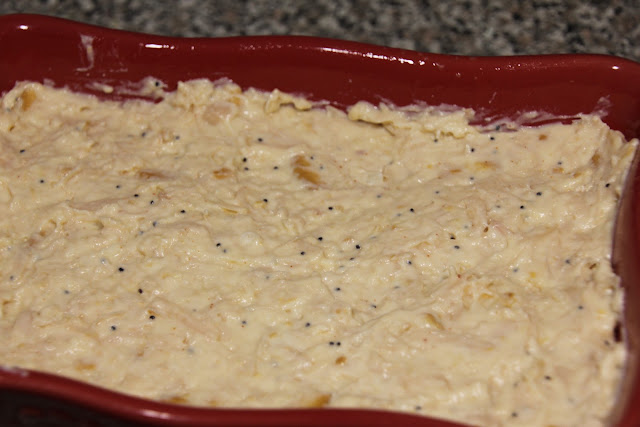 Pour the mixture into the prepared casserole dish, and smooth it evenly.